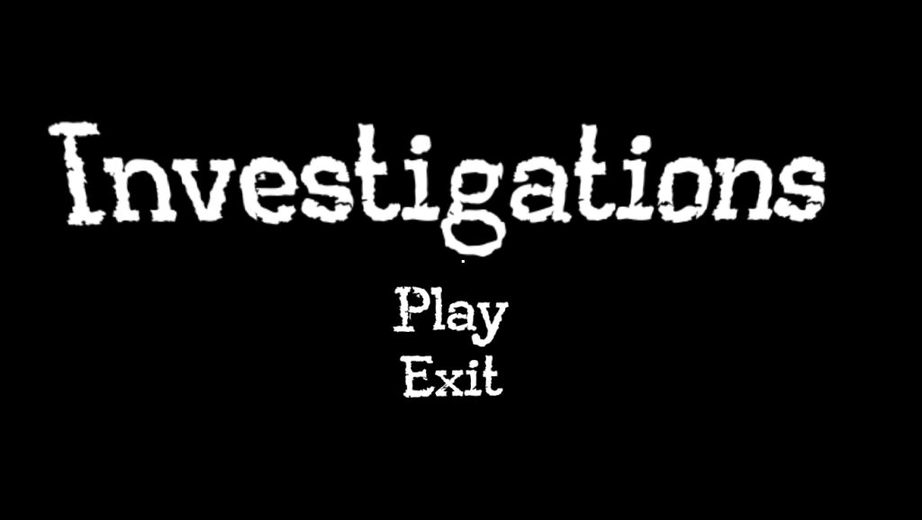 Investigations was produced over four weeks, with all assets produced independently, with the exception of fonts (sourced from dafont.com, see credits) and sounds (sourced from freesound.org, see credits).