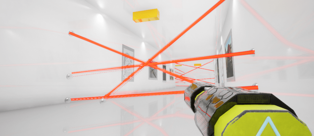 Duckington’s Wonder Emporium is a first person puzzle platformer made in Unreal Engine 4. Players must locate three artefacts and return them to the atrium to retrieve the coveted diamond. To navigate the puzzles in each room players utilise a grapple gun, that allows them to swing from metal objects, as well as a time-turner that slows time for short periods.